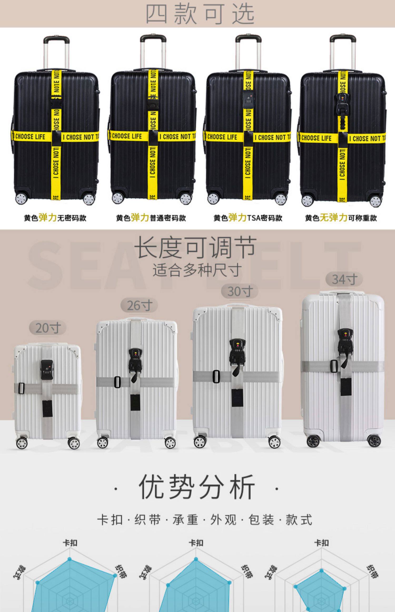 Ремень безопасности, чемодан, резинка для крепления багажа, пакет