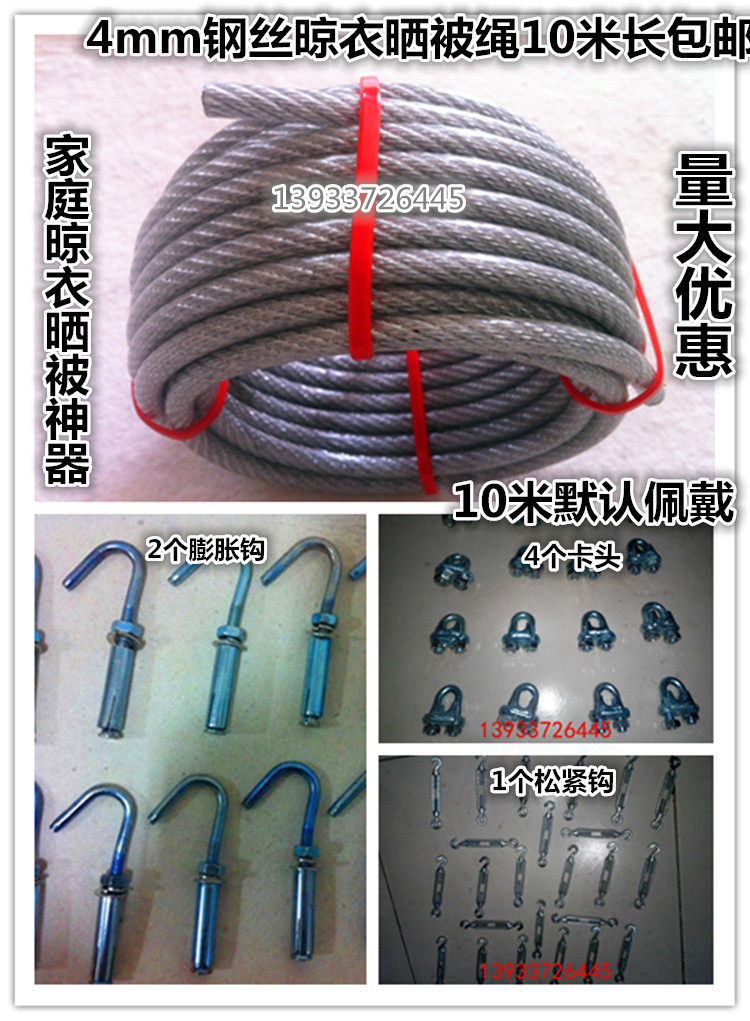 Стальная проволка, сушилка, бельевая веревка, прохладное одеяло, барсетка, 4мм, 10м