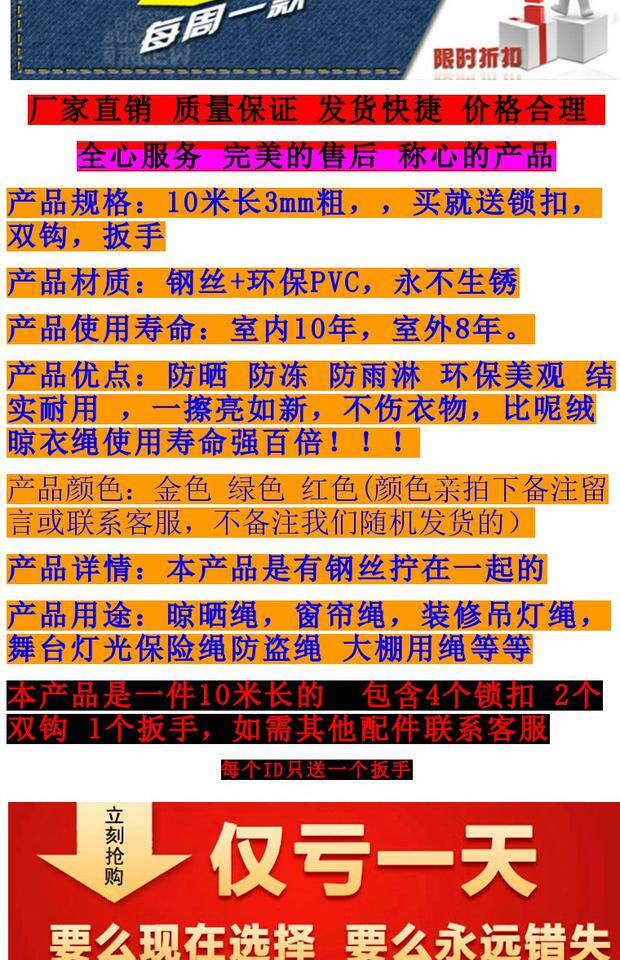 [Ежедневные специальные предложения] 10 -метровая сушка веревка веревочной стальной проволоки против сушной одежды и веревки высушенной веревкой веревкой веревке