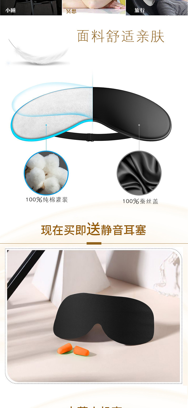 Мужская шелковая дышащая повязка для глаз, регулируемые мягкие беруши для сна, защита глаз