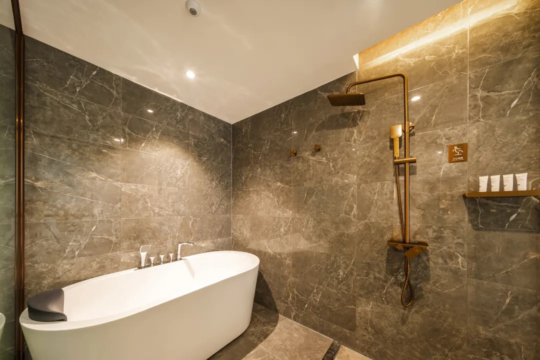 Отель Yilong Xicheng International (филиал станции метро Guangzhou Zengcheng Xintang) Ванна с ночным видом на достопримечательность Номер с кроватью размера «king-size»