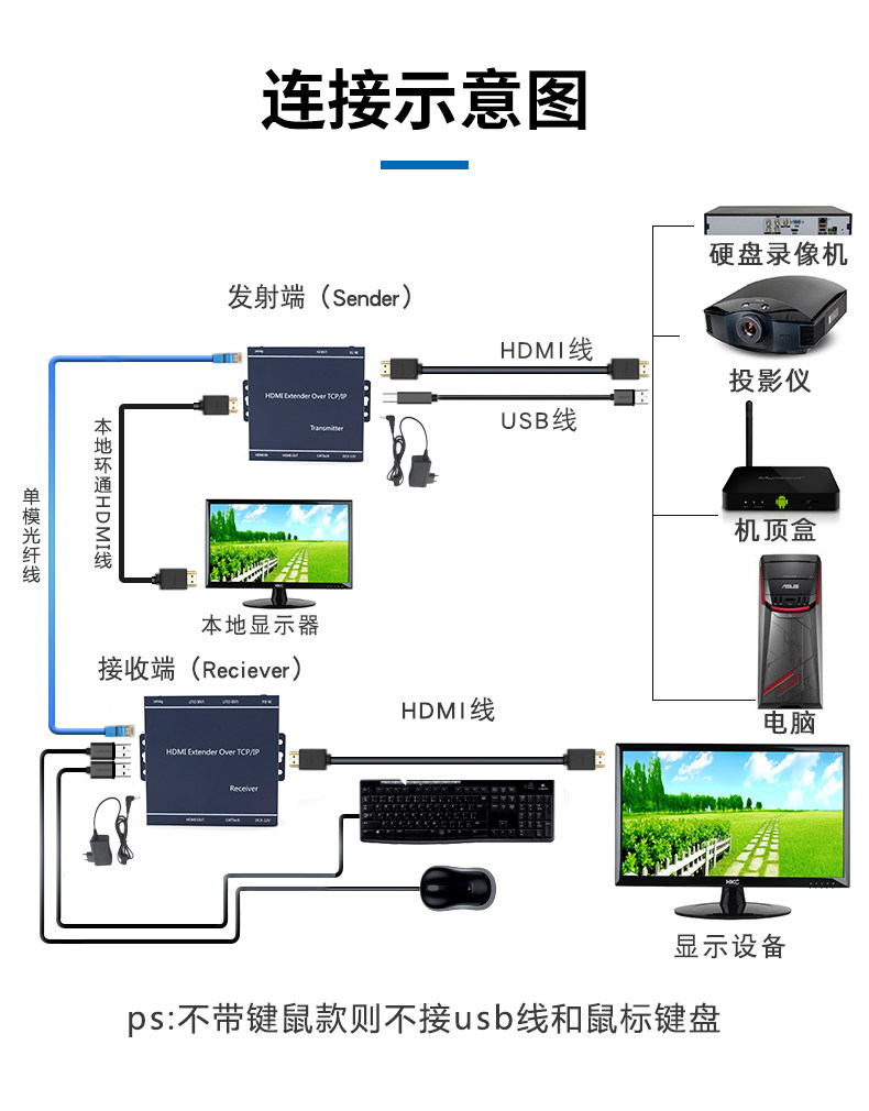 VGA HDMI Оптическая конечная машина Оптическое оптическое плетеные одноволоконные оптоэлектронные преобразователь Ключ мыши мышиная передача мыши продливы