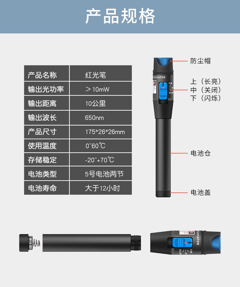 Красная ручка 10 МВт Оптическое волокно -зрение Источник красного света 10 км волокно Следуйте тестовой ручке 20 МВ