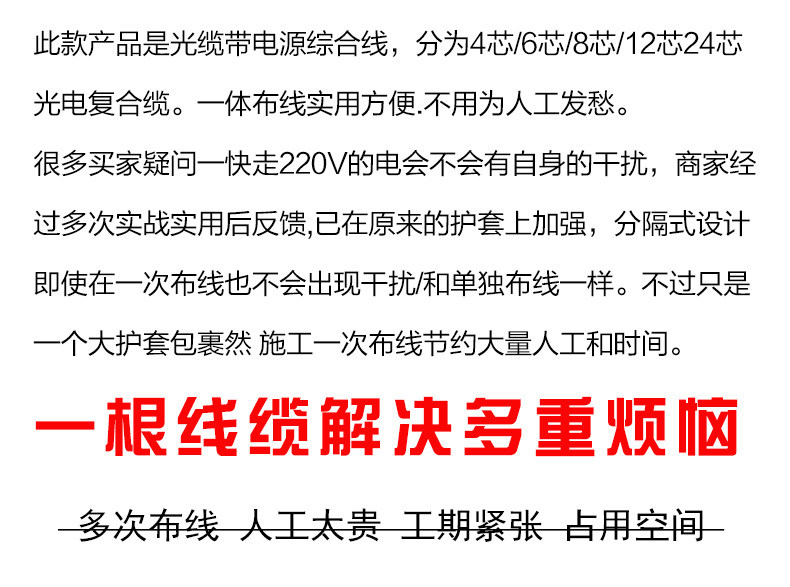 - Бронированный 12-жильный оптический кабель + 1,0 чистая медь 100 метров