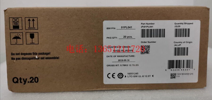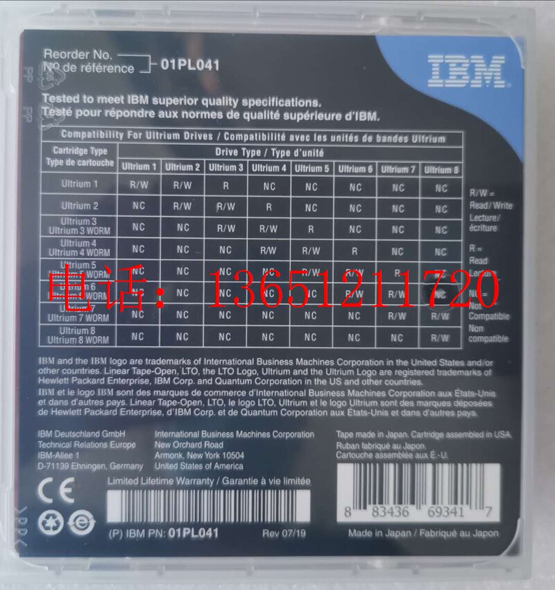 Продвижение IBM LTO8 лента Ultrium 8 12TB-30TB 01PL041 Резервное копирование данных