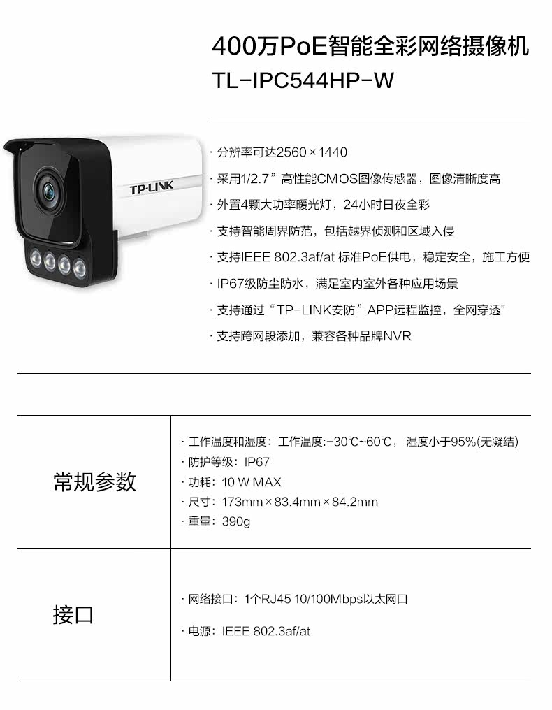 TP-LINK Безопасность 4 миллионов Poe сетевой кабель Проводной питания Проводной мониторинг камера на открытом воздухе сетевая камера машины с пулеметом домашний мобильный телефон Wi -Fi Уровень ночного зрения Уровень IP67.