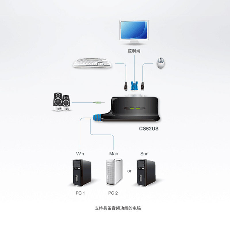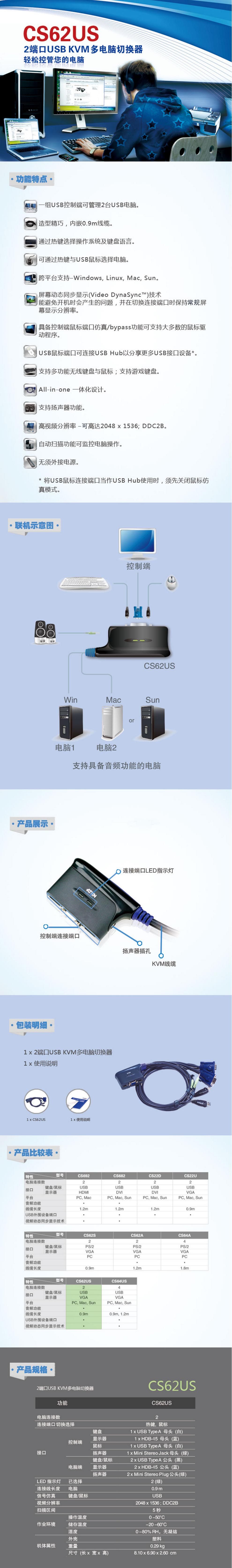 Aten/Hongzheng CS62US 2 VGA Hot Key Switch USB Беспроводная механическая клавиатура KVM Общее устройство
