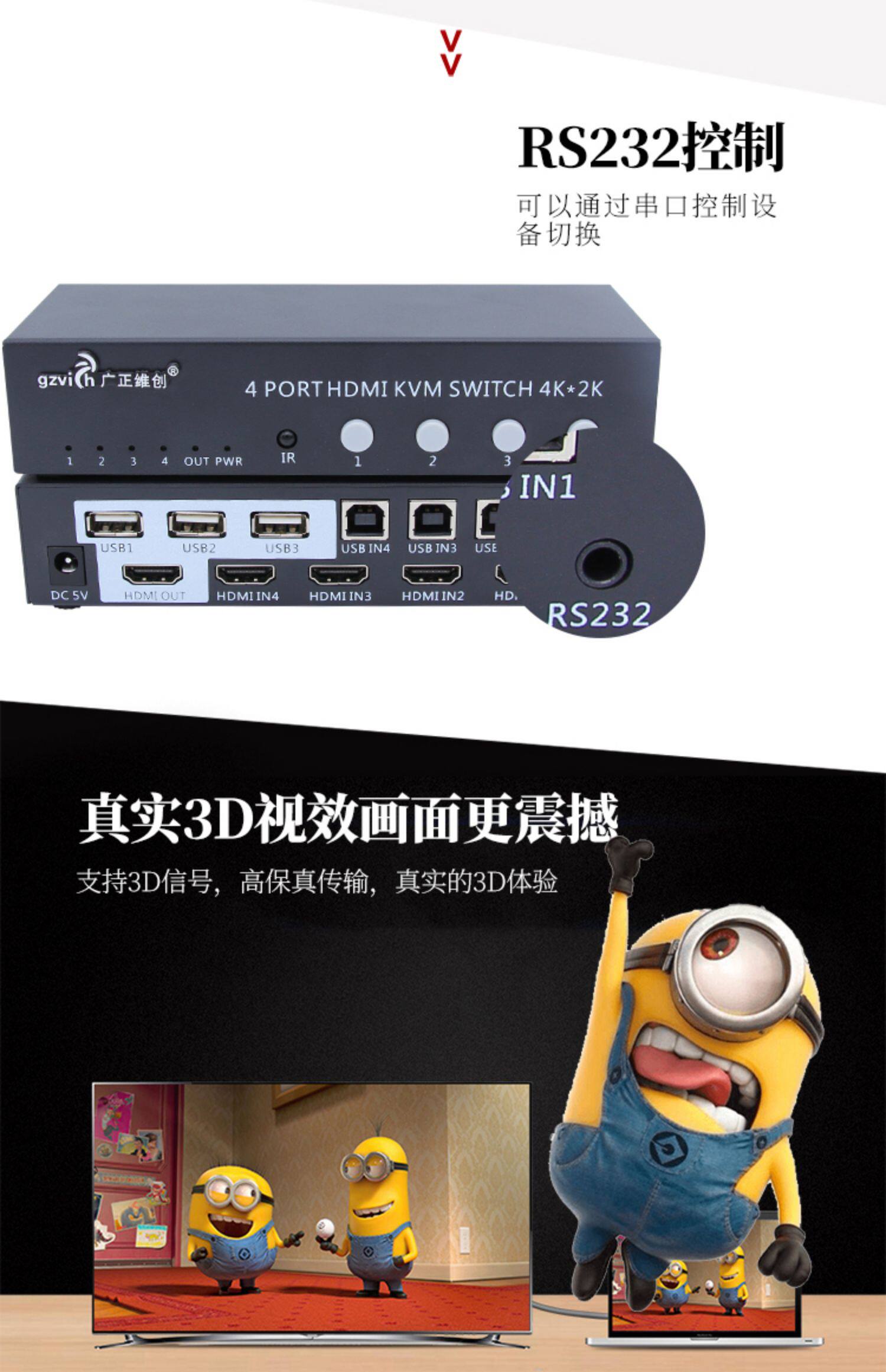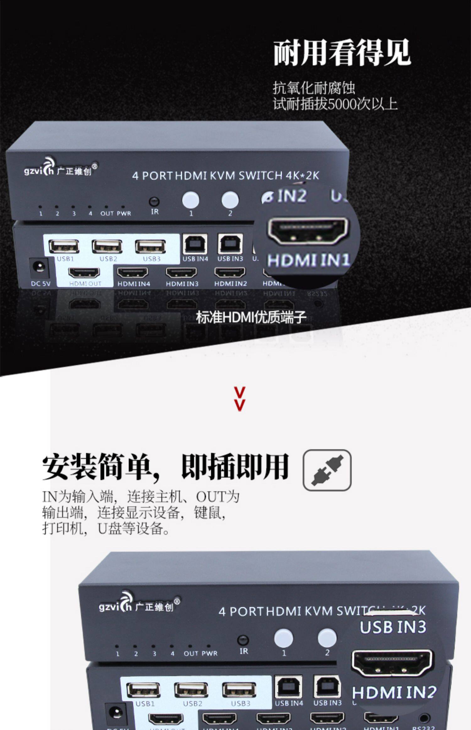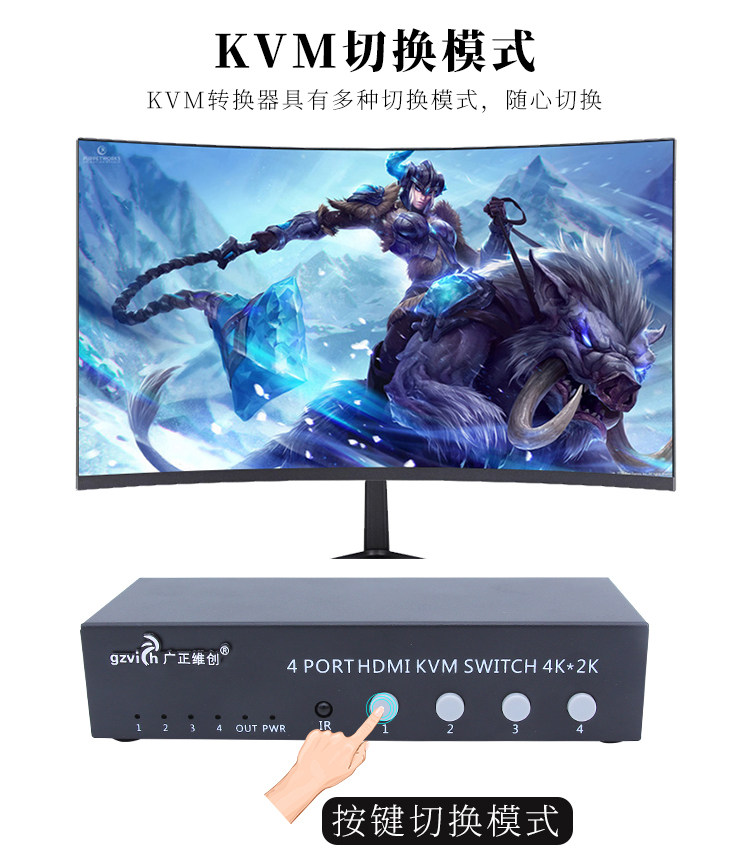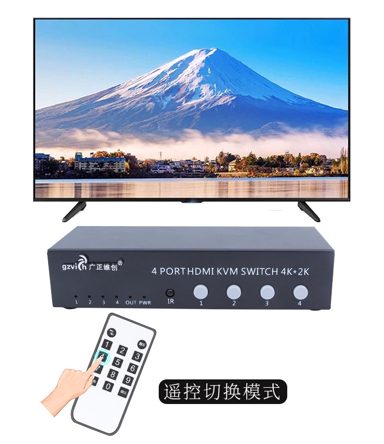 KVM-переключатель 4 порта Компьютерный хост 4 в 1 Видеорегистратор для наблюдения HDMI Четыре входа и один выход для мыши Клавиатура USB USB-устройство для совместного использования печати Разделенный экран с дистанционным управлением Управление последовательным портом 4K * 2K