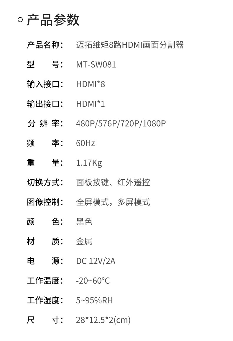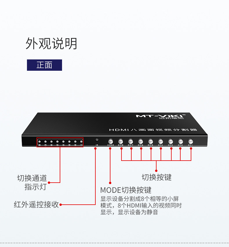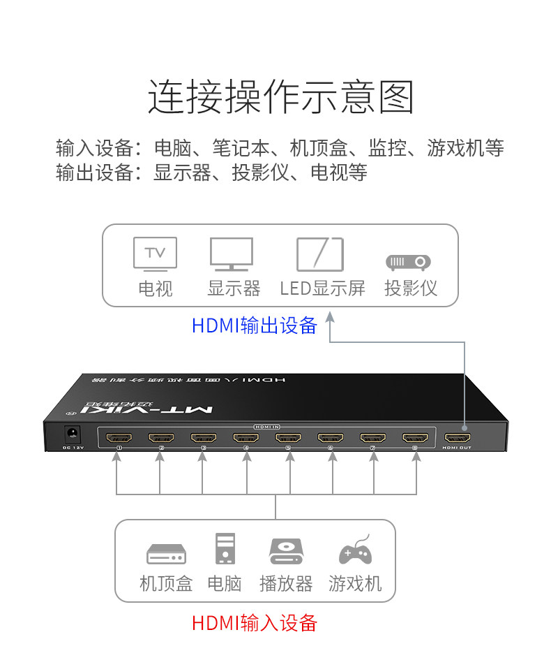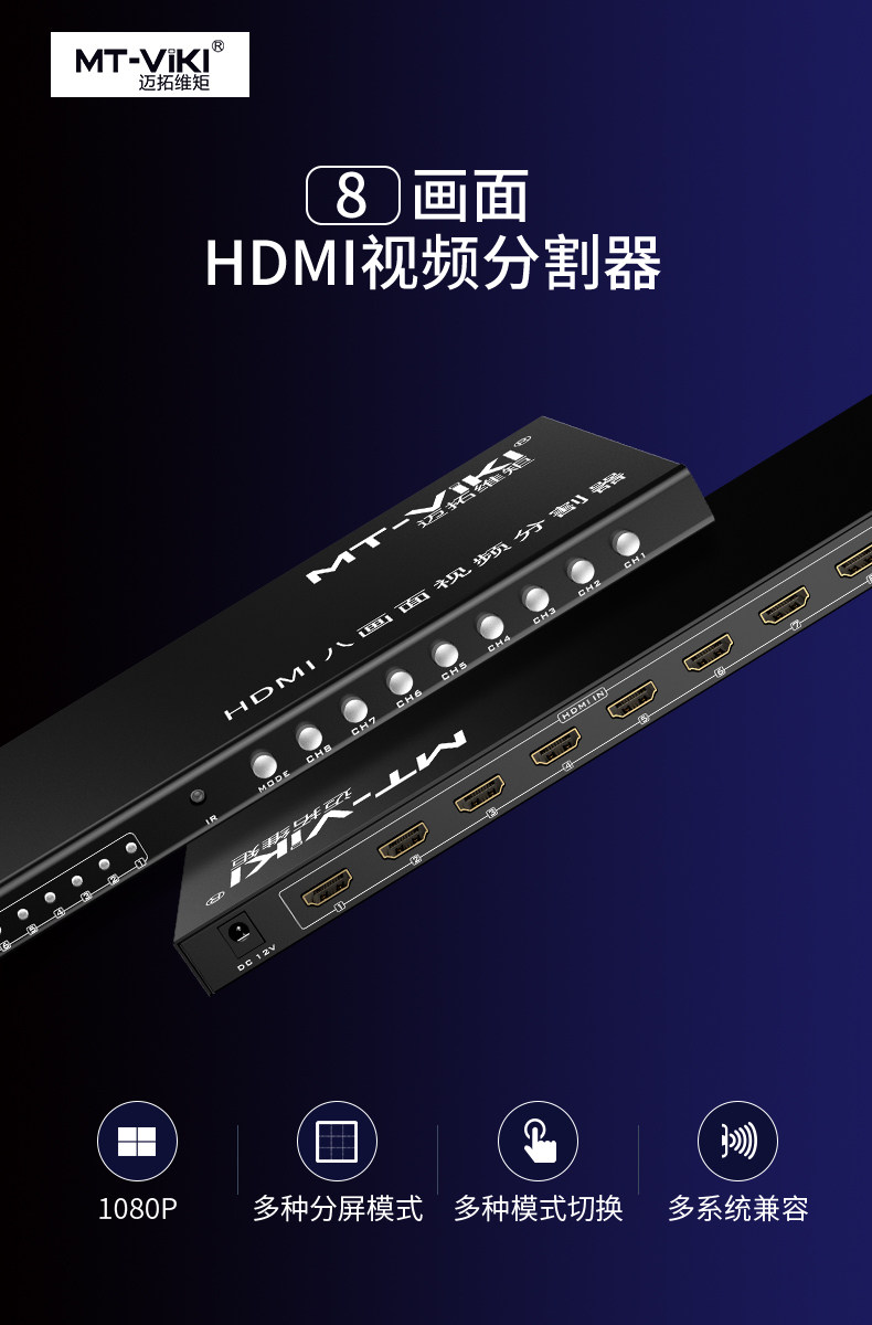 MTSUWEI MT-SW081 HDMI Computer Divisor 8-way DNF-кирпичный дисплей.