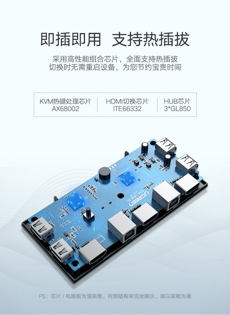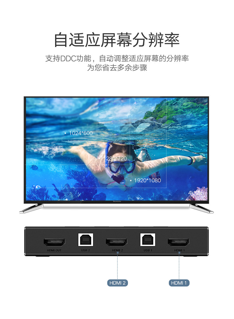 绿联 KVM Switch HDMI Два -в одном из 2,04K HD Два компьютера Общаясь с принтером дисплеев, набор клавиатуры, мыши -клавиатура мыши синхронные общие резаки для экранов
