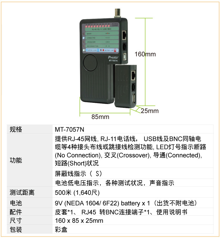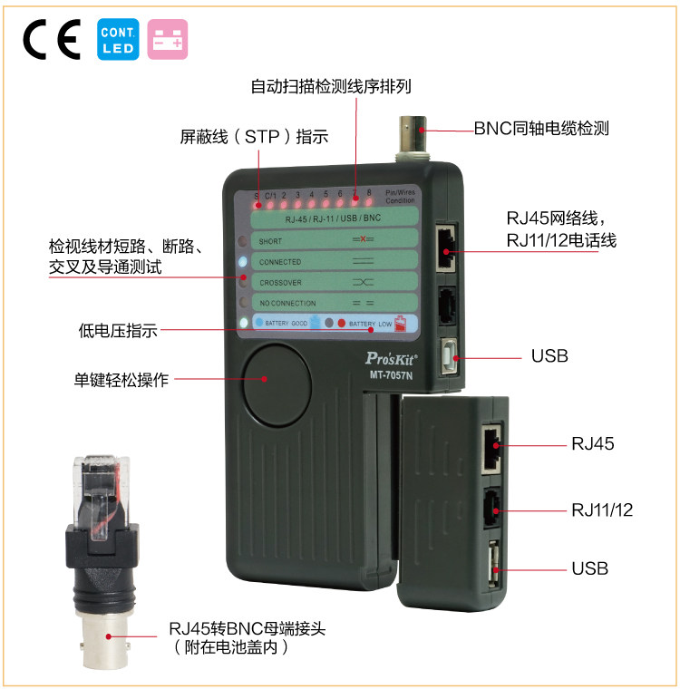 Тайвань Баогонг MT-7057N 4-в-1 Измерение проволочной сетки-метра сетевой тестер сетевой тестер USB тест