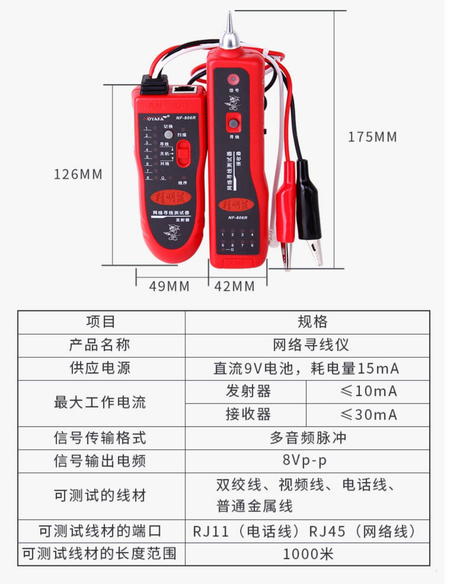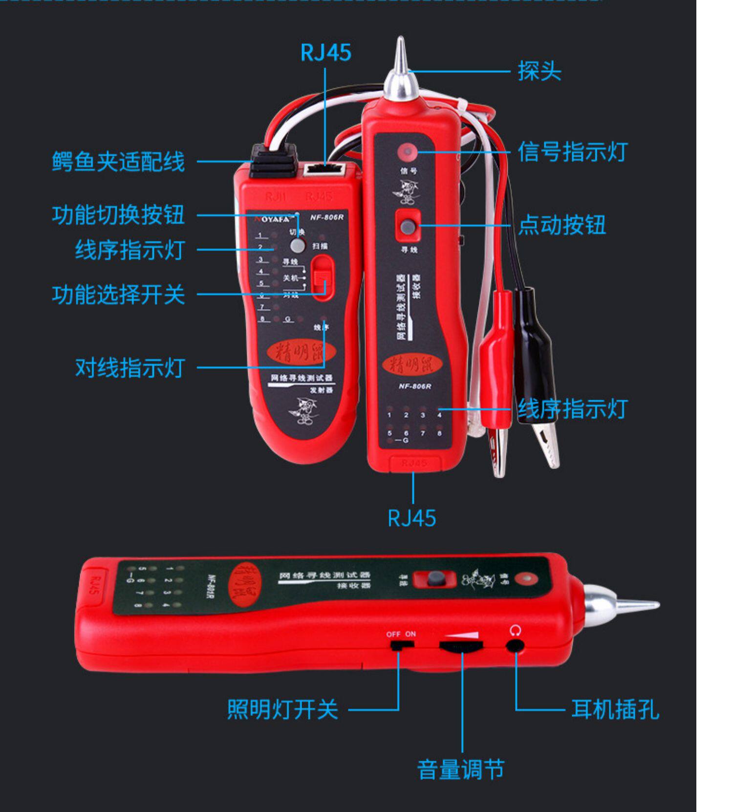 精明鼠 NF-806R Многофункциональный сетевой кабель Finder Finder Finder сетевой кабельный кабельный кабельный кабельный кабельный тестирование прибор NF-801R Patriot Detector Найдите набор для проводки набор сжигания мощности POE