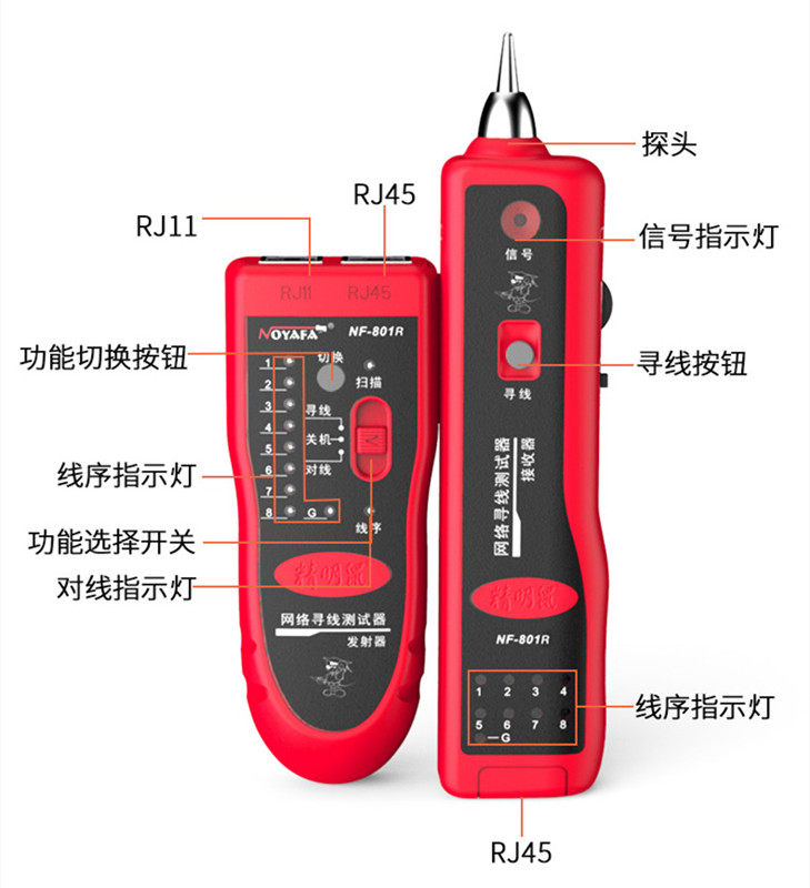 精明鼠 Поиск сетевого поиска сетевого кабеля Многофункциональный прибор для проводки NF-801R Измерение проволоки Проверка проволоки искатель провода