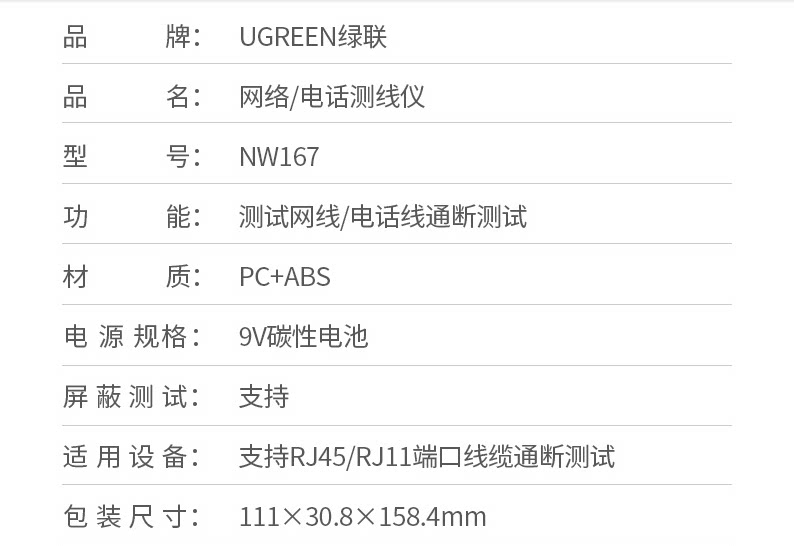 Зеленый союз NW167 сетевой кабельный тестоер POE Detector RJ45/11 сетевой кабель телефона Многофункциональная линия проверки