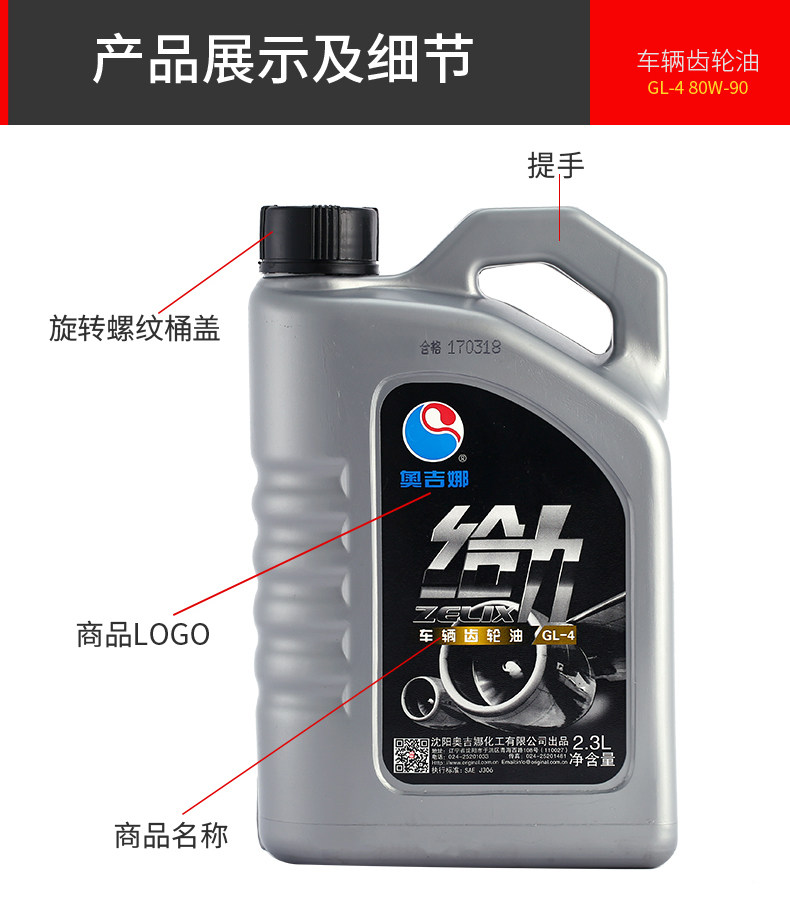 奥吉娜 Bi-Curve Gear Moil GL4 80W-90 Ручная коробка передач масла автомобиля задняя ось Масло 2.3L
