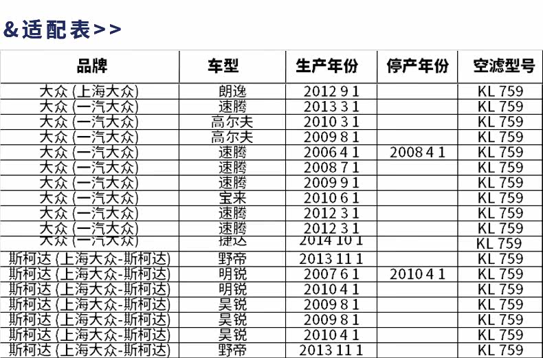 | 1.6L | 2012.12- | OC1196 | KL735 | C21011 | LAK1131 | |