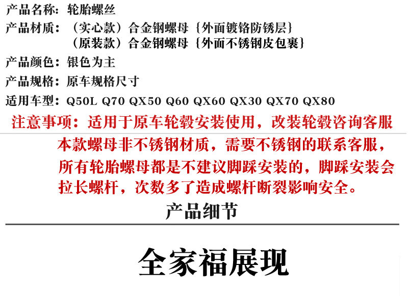 | Цвет: | Оригинальная модель ореха (цена за единицу), Реал -заместительный орех (цена за единицу), Винт Infiniti (цена за единицу), Infiniti {301} Модельная рукав, Infiniti QX80 Сплошная гайка (21 пары), Эсквайр (специальная ореха), QX30/Q30 (специальный винт), Infiniti (выделенный) анти -зубной рукав |