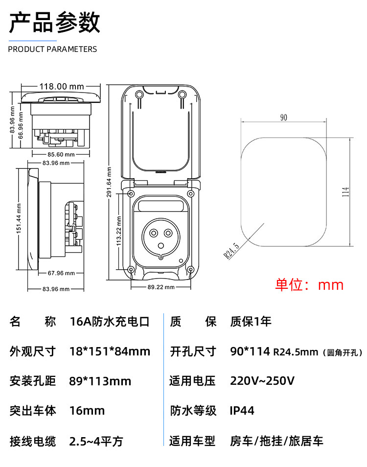 Модифицированный дом на колесах с аксессуарами с зарядкой, водонепроницаемый блок питания, 16A