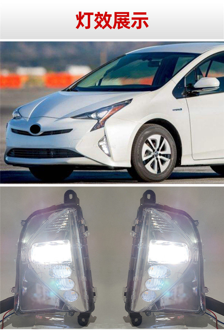 Применимо к Toyota 16-18 Prius Prius Rid Daily Lights Front Fog Lights, чтобы повернуть лампы в дневные приводные огни