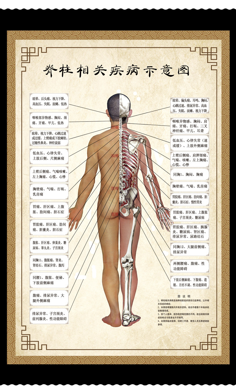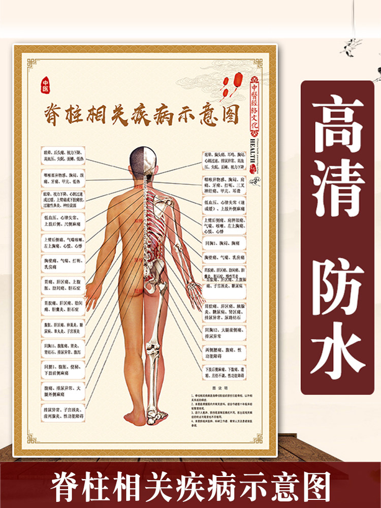 Схематическая диаграмма заболеваний, связанных с позвоночником, висящая диаграмма позвоночника Meridian Meridian Back Acupoin