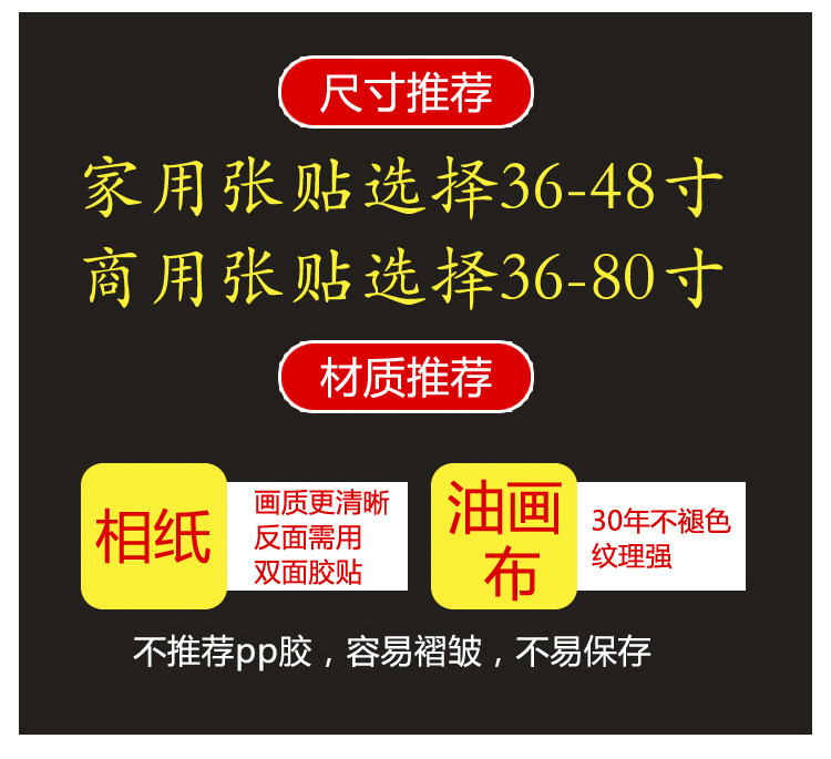 | Материал: | PP Back Glue [разорвать открытие и post], Масляная краска Ткань Отправка оси: 60 дюймов и ниже, KT Board [Бесплатный маленький серебряный край], Фото бумага [без клей на задней части фильма] |