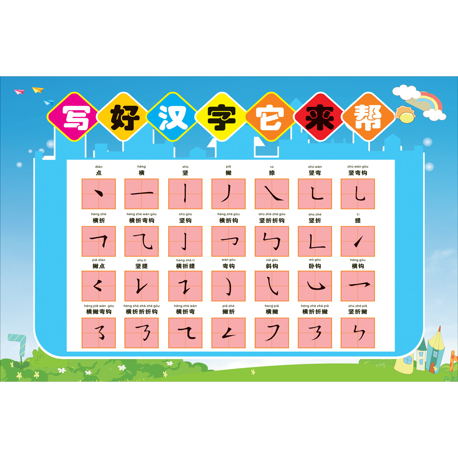 Постер для детского сада для школьников для первого класса, грамотность, китайские иероглифы
