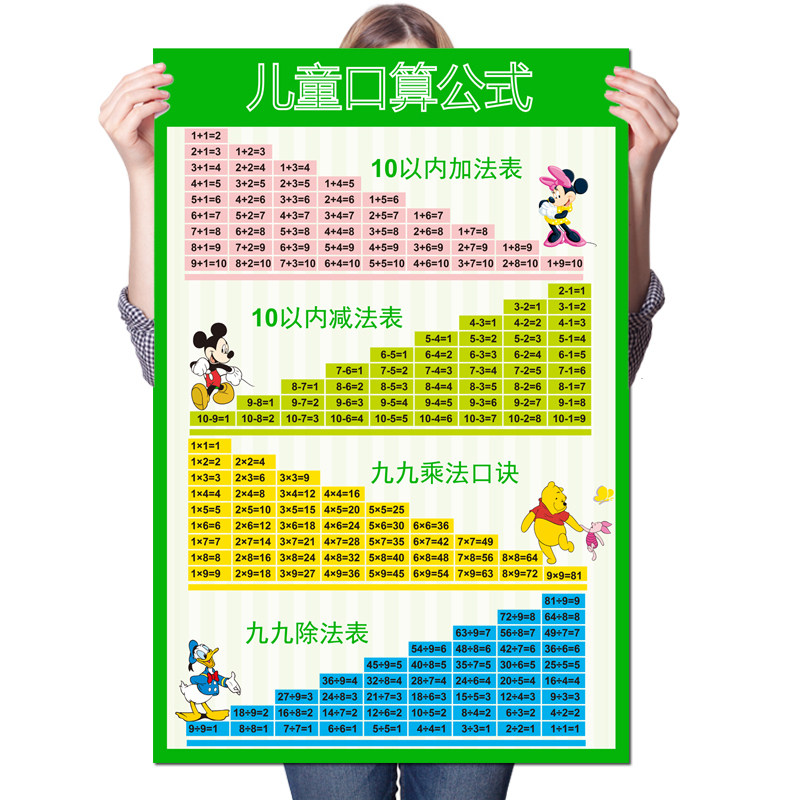 Детская таблица формул для детского сада для школьников для устного счета для тренировок, постер на стену, раннее развитие, сложение и вычитание, умножение и деление