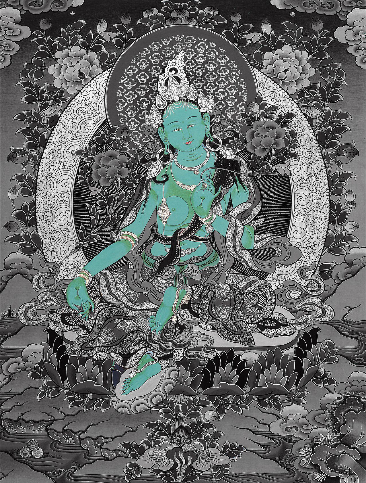 Зеленая тара современная линия золота рисунок просто