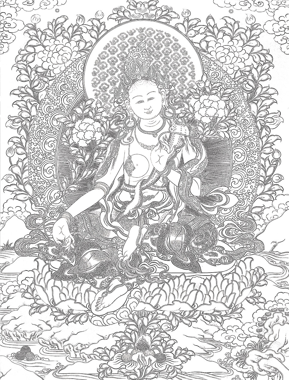 Тхангка рисует золотая мать, рисуя рисование DIY рука