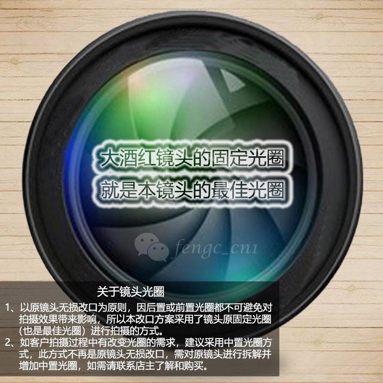 Апертура лиги:Используя метод съемки фиксированной апертуры 2.8 в оригинальной линзе, эта апертура достаточна для съемки среднего объектива. Неразрушительное изменение, решение можно попросить спросить владельца магазина