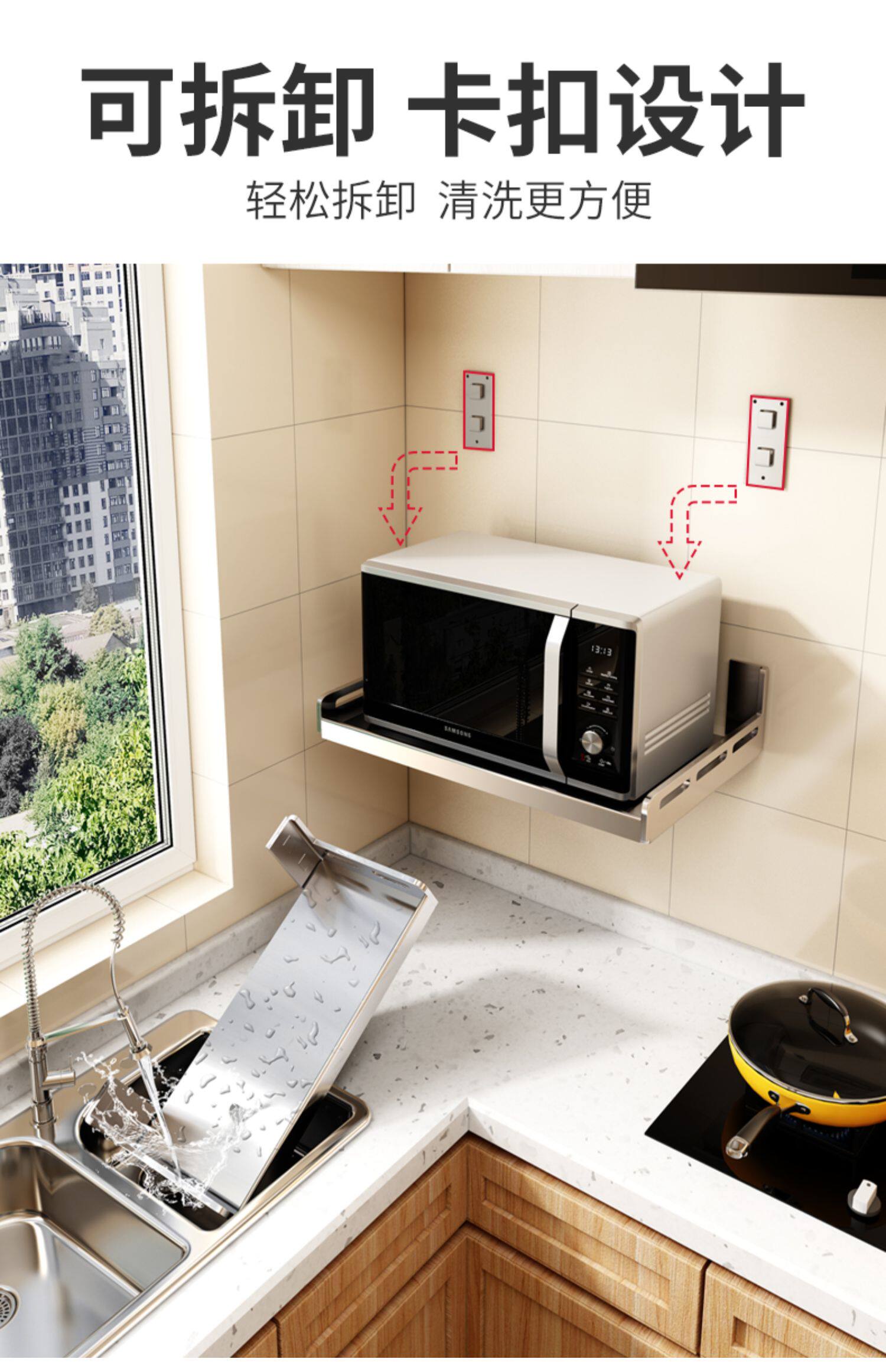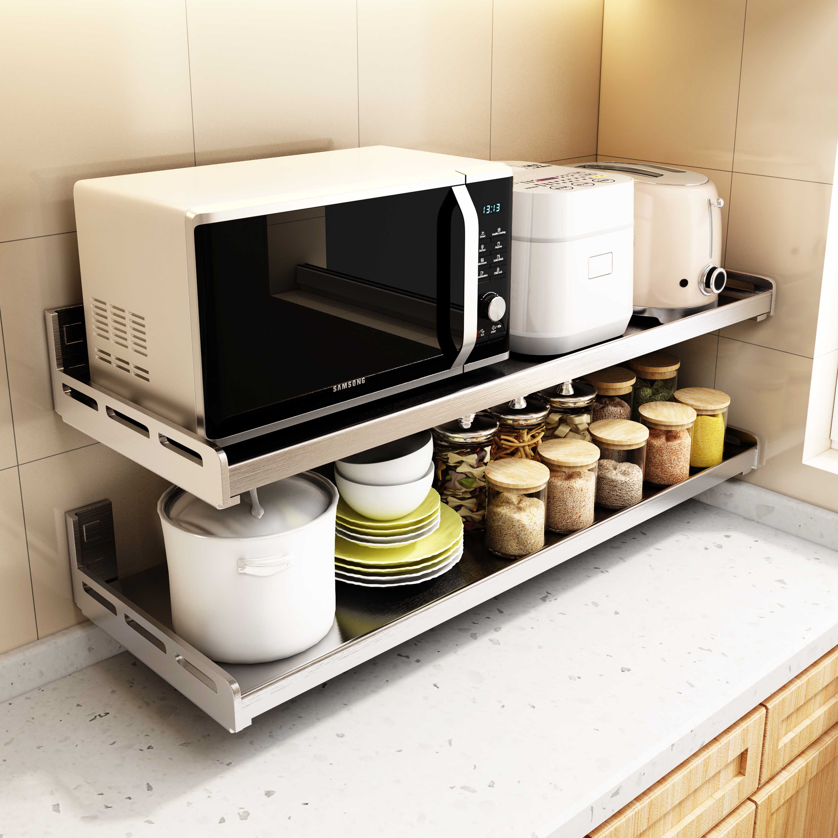 304 Стена из нержавеющей стали -кухонный ход -холк Сторн Оверни на стене стены микроволнового удара SMEDIE для многофункционального многофункционального