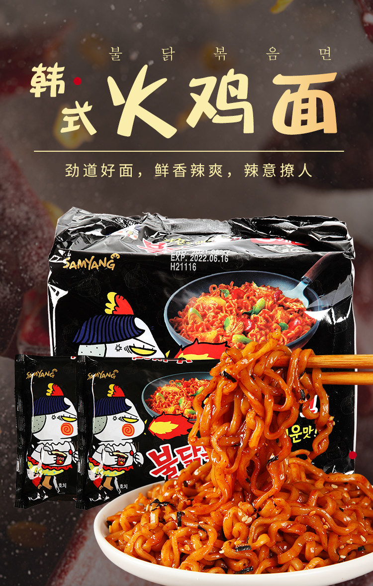 Корейская подлинная трех -подъемная лапша индейки Супер пряная саньянская лапша куриная аромат импортированный сеть красный