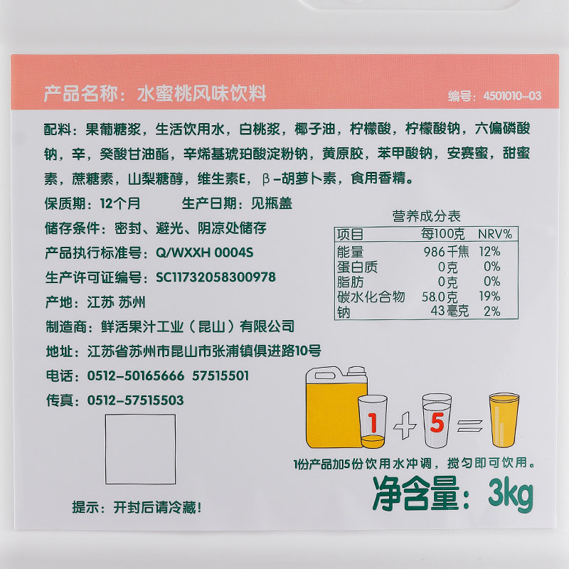 Пресная вода персиковой сок 3 кг высотой -концентрированный коммерческий фруктовый сок