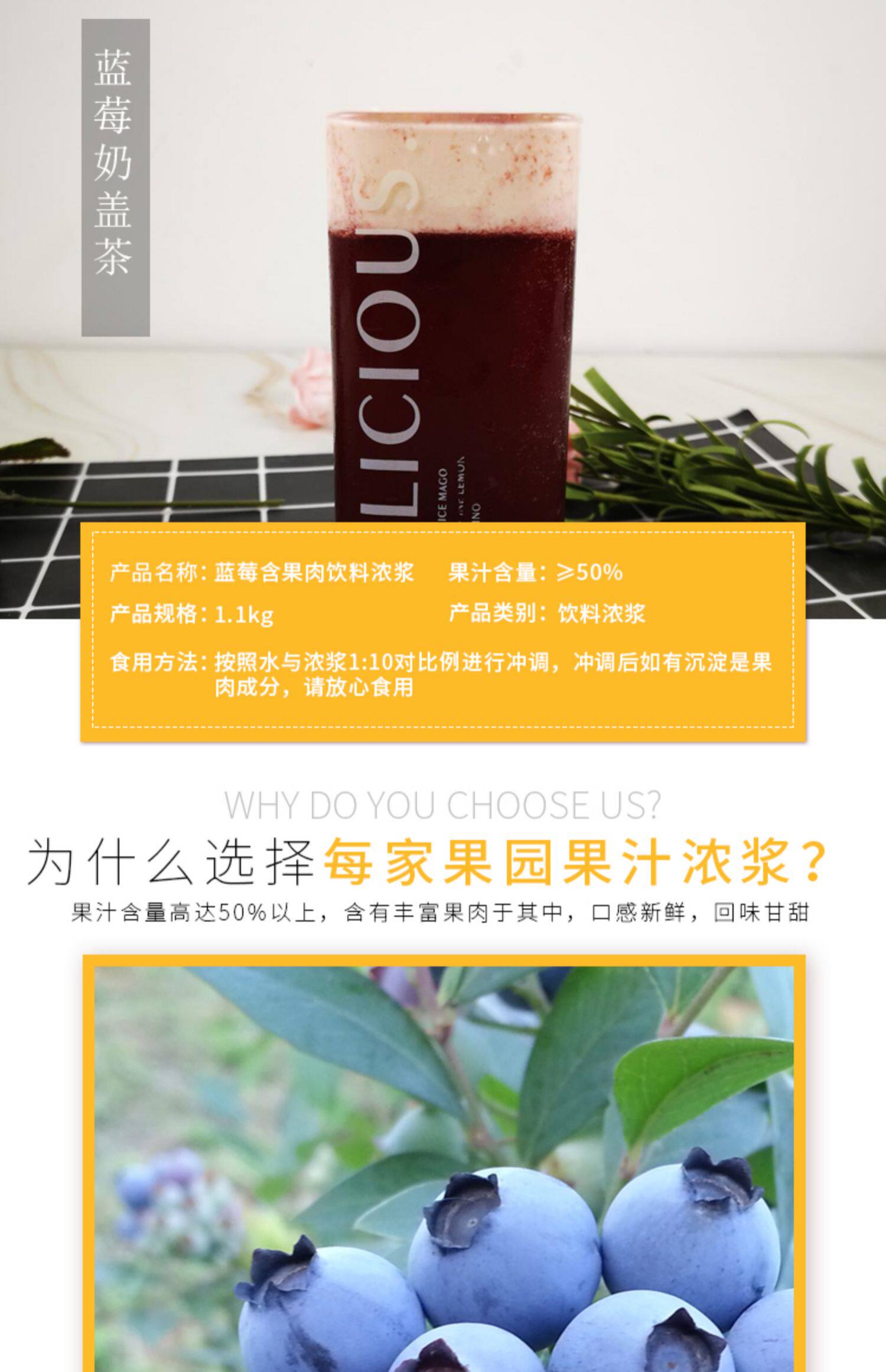 每家果园 Черничный сок, концентрированный фруктовый сок, содержащий чайный магазин мясного молока для коммерческих напитков, вкусный черничный дом