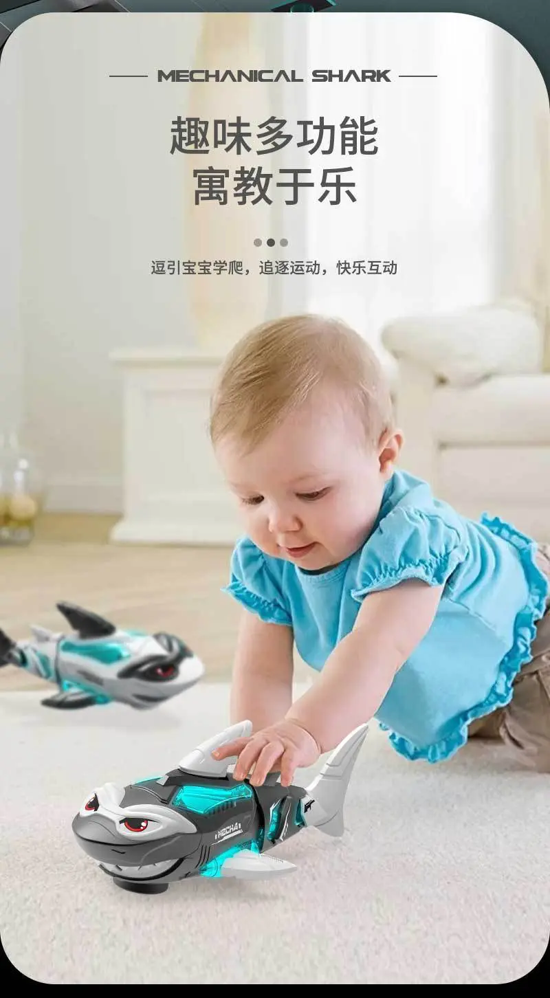 Электрическая универсальная легкая музыкальная акула для тренировок, игрушка для новорожденных для ползания
