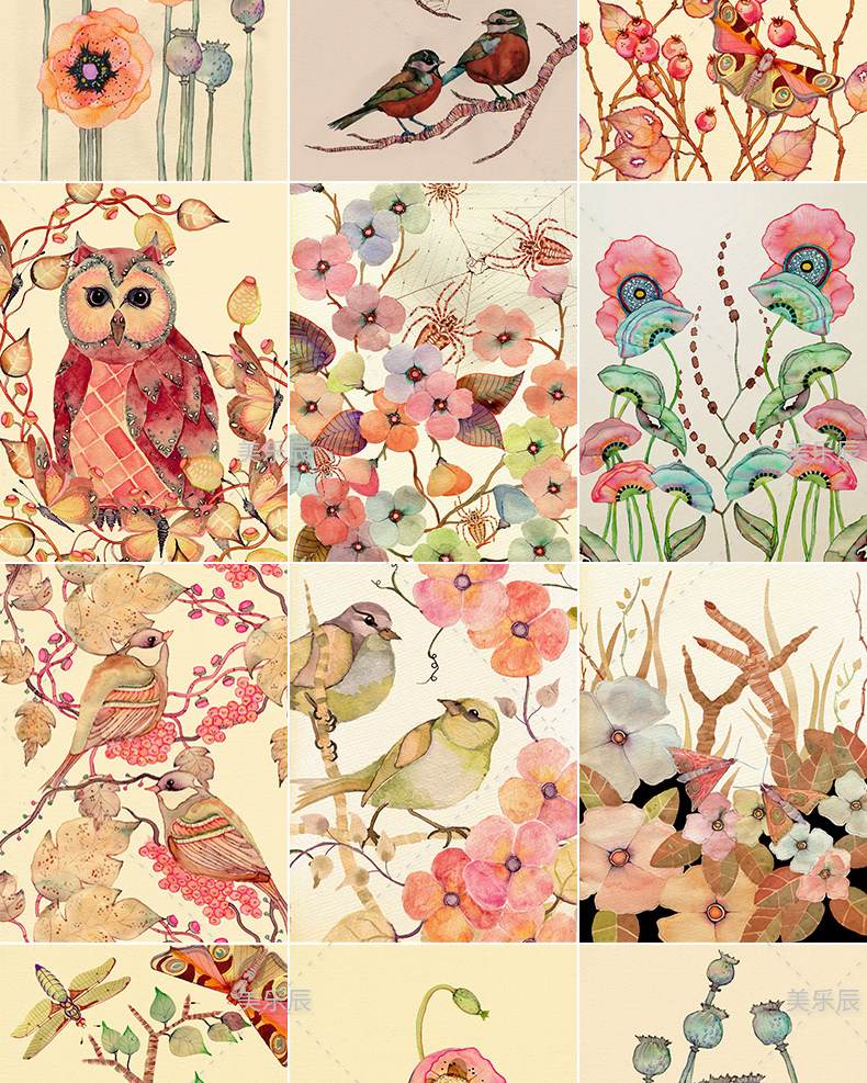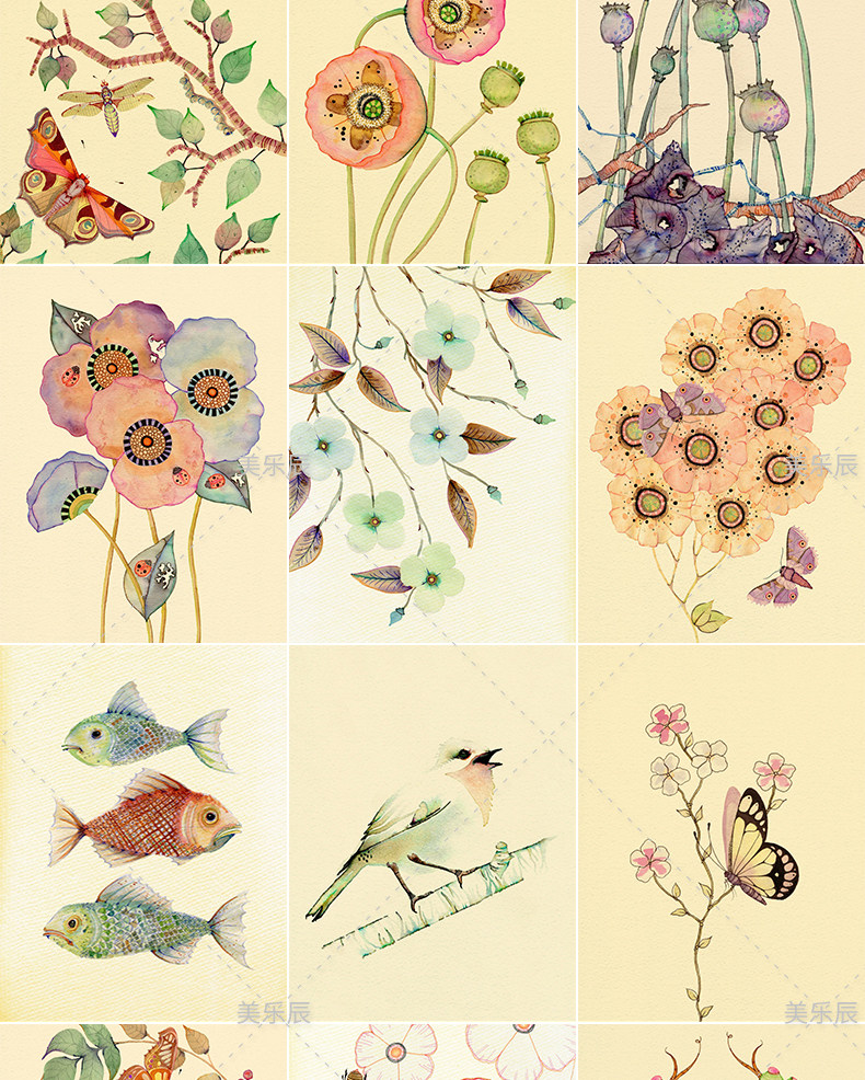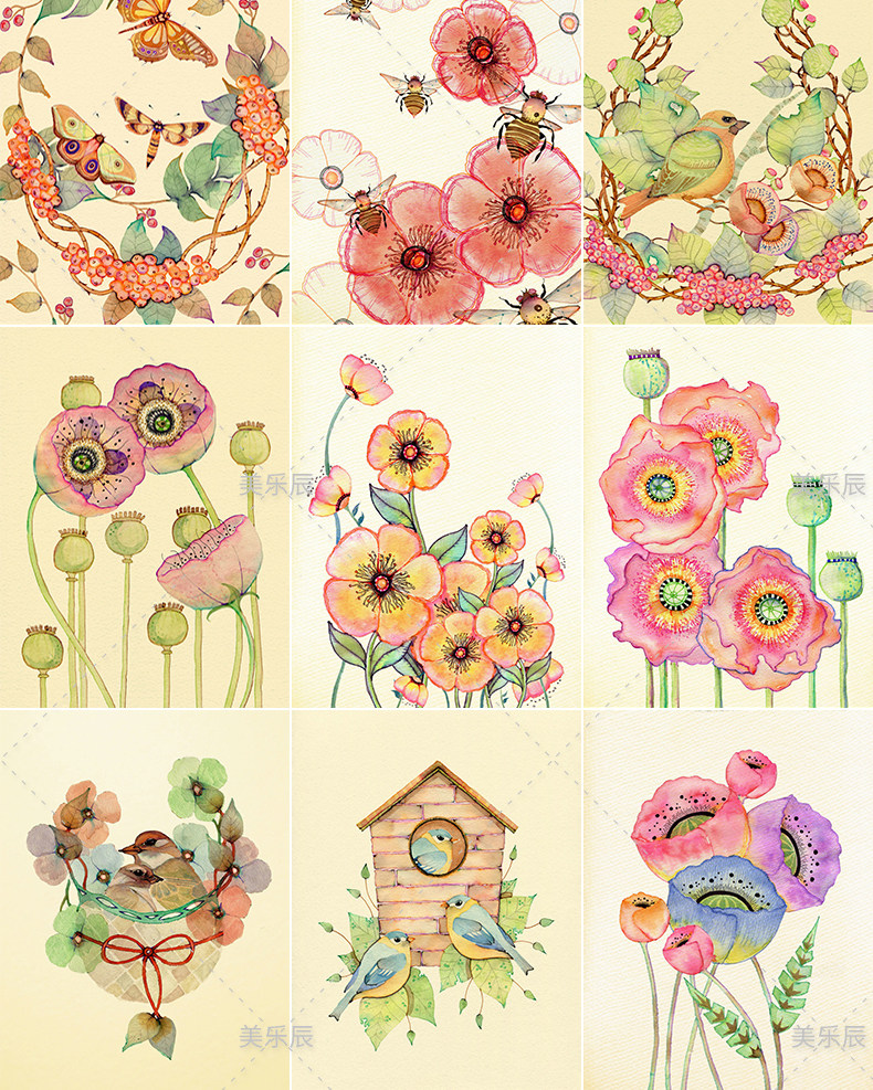 F351 Декоративная живопись иллюстрация рука -заполненное цвето