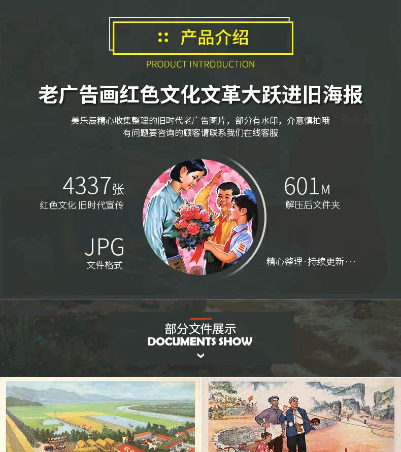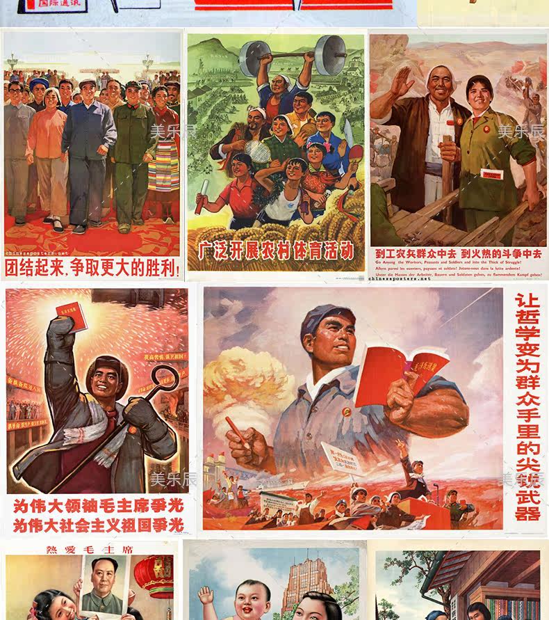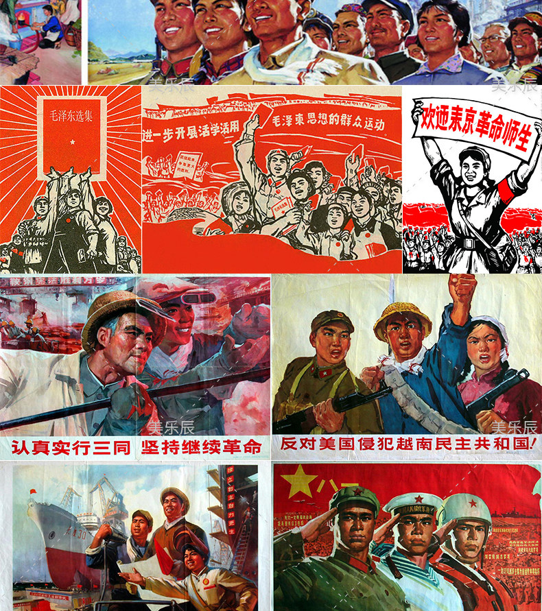 F384 Старая рекламная живопись картина Материал Красная культурная революция Великий прыжок