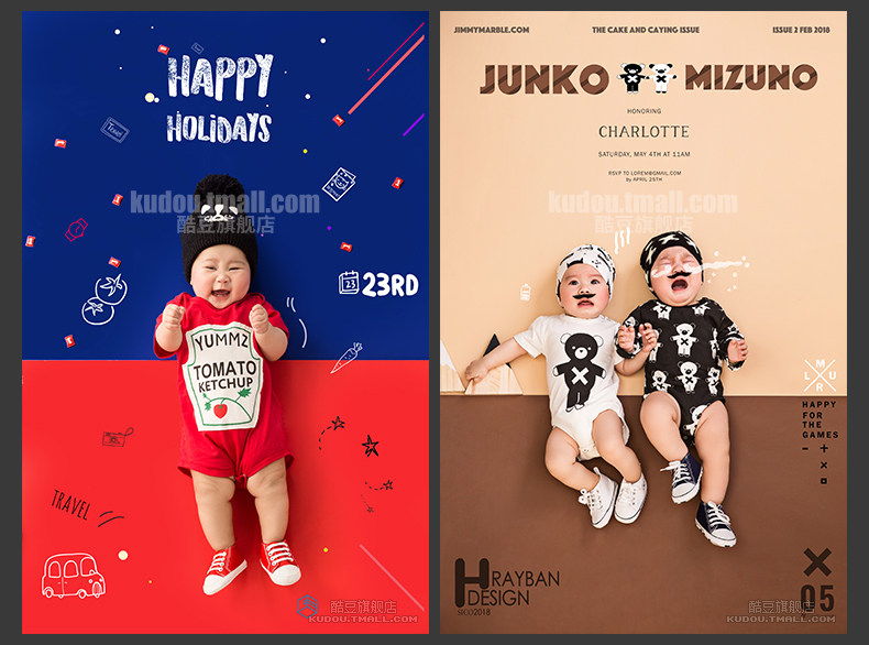 Детский PSD шаблон шрифта ребенок одного года художественное фото малыш фотоальбом фотостудия текстовый макет материала