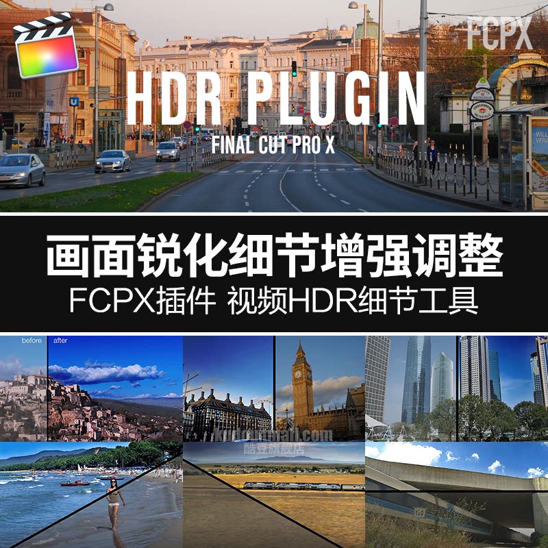 FCPX Plug -IN видеократный экран HDR Высокий динамический диапазон Детали резкости усиливают часть тени, чтобы настроить плагин -IN