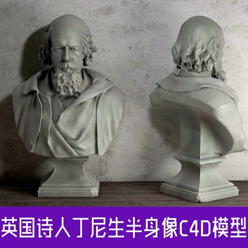 C4D Британский поэт Ding Nisheng Half -Bald Gypsum Статуя скульптуры Творческая сцена 3D -модель SX231