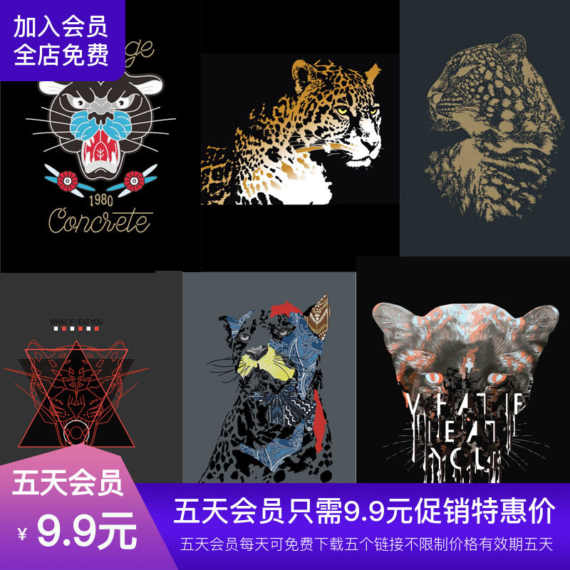 741 Европейский бренд прилив мужской животный леопардовый рисунок редактирование ai vector t -лайка