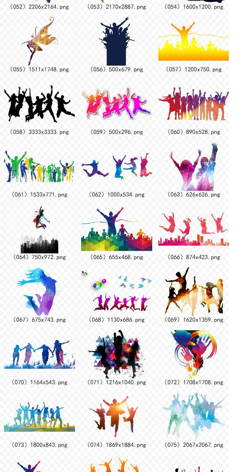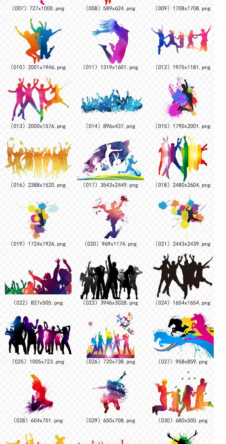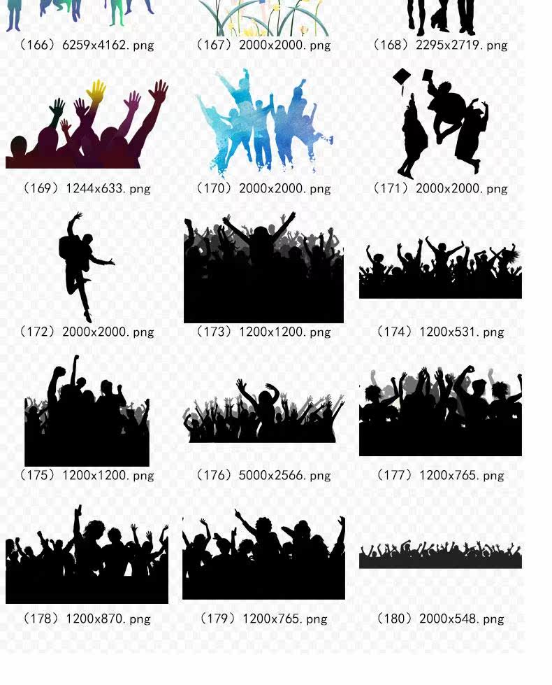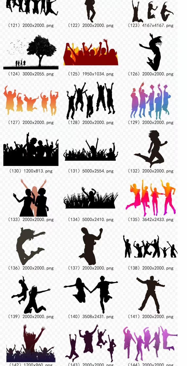 180 Carnival Silhouette Cheers, прыгающая толпа цвет черно -белый персонажей Силуэт Silhouette Png Свободный отбор материал