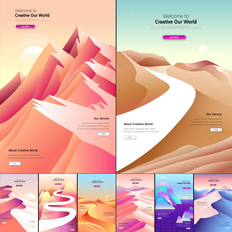2.5D Трехмерный градиент, извилистый, маленький речный пустынный горный скал, пейзаж, иллюстрация иллюстрация, дизайн векторного материала AI
