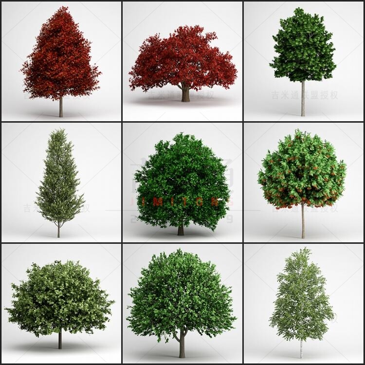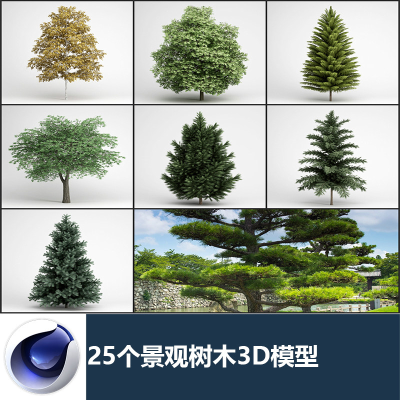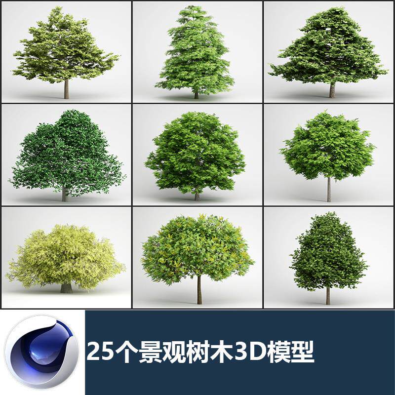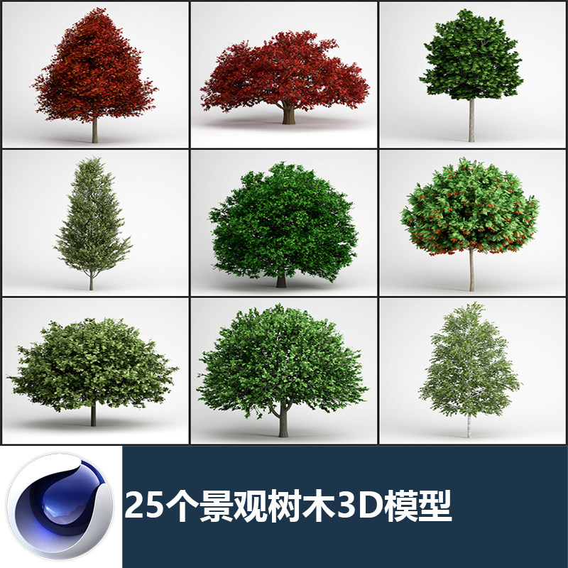 C4D 25 Ландшафтные деревья Кленовые кленовые сосны и тополь