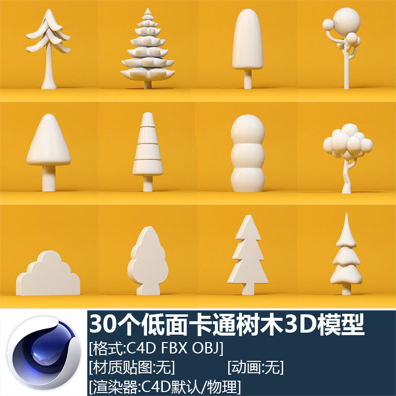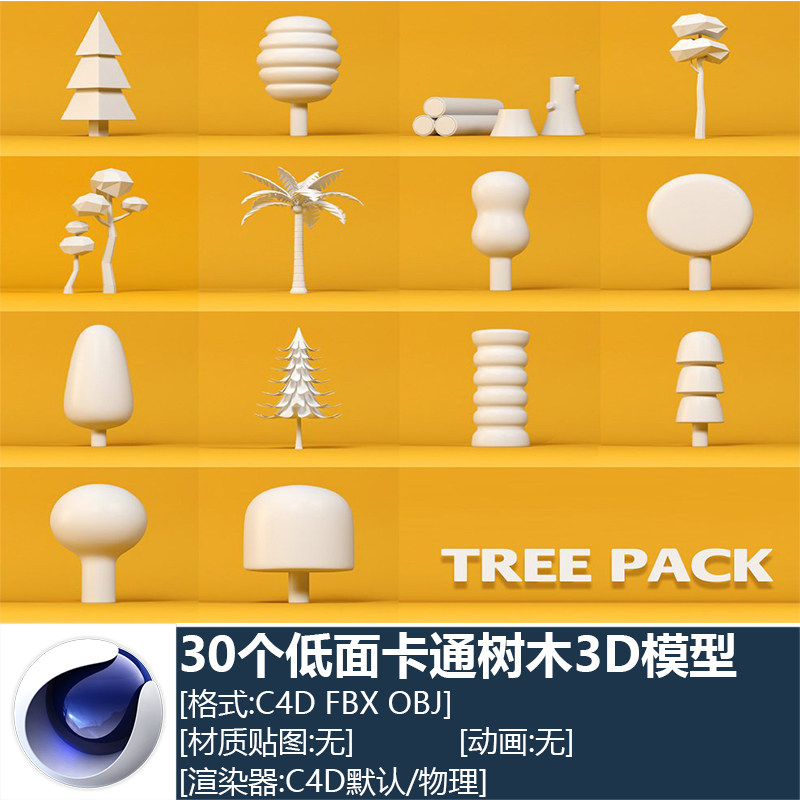 C4D FBX OBJ 30 Низкие мультипликационные деревья Сосновая кокосовое дерево Трехмерная модель Материал_197