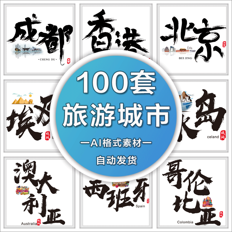 PMAI002 Каллиграфия шрифт Ай формат внутренних и иностранных туристических городов Пропаганда Плакат фоновые векторные элементы вектора