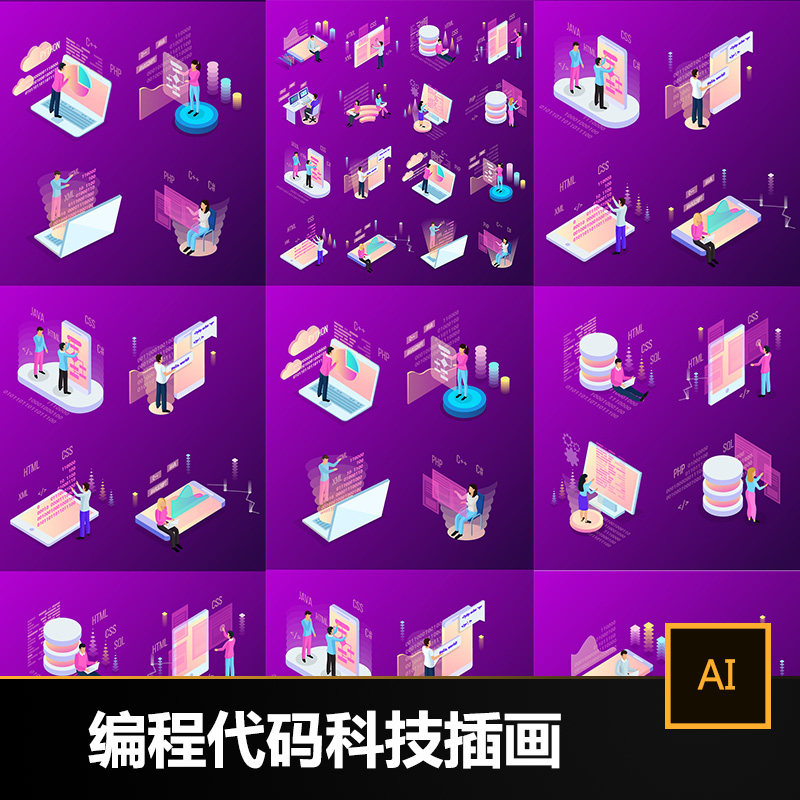 2.5D Stereo UI Web Illustration Technology Technology Code IT Интернет -разработка векторного материала S229
