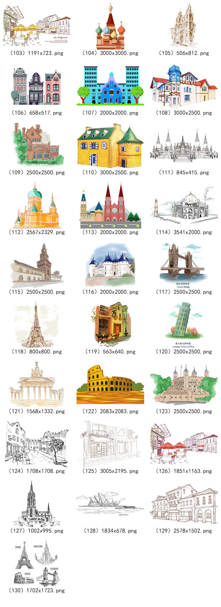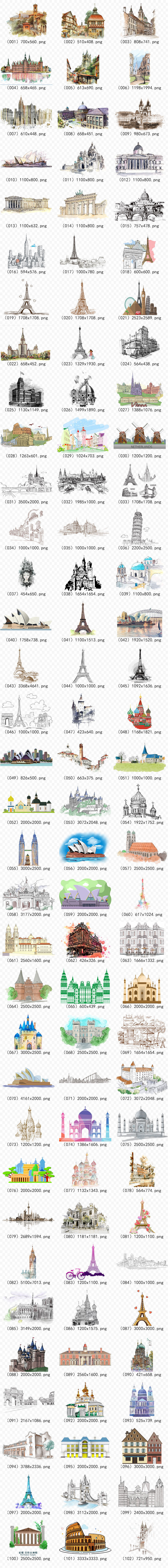130 мультипликационная рука с акварелью европейской архитектуры Классическая архитектура иностранные знаменитые знаменитые здания PNG Материал -