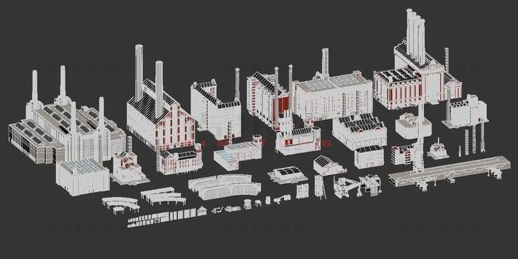 3DS FBX OBJ MA/MB портовый терминал здание дом заводской дизайн ссылка 3D модель материал 988