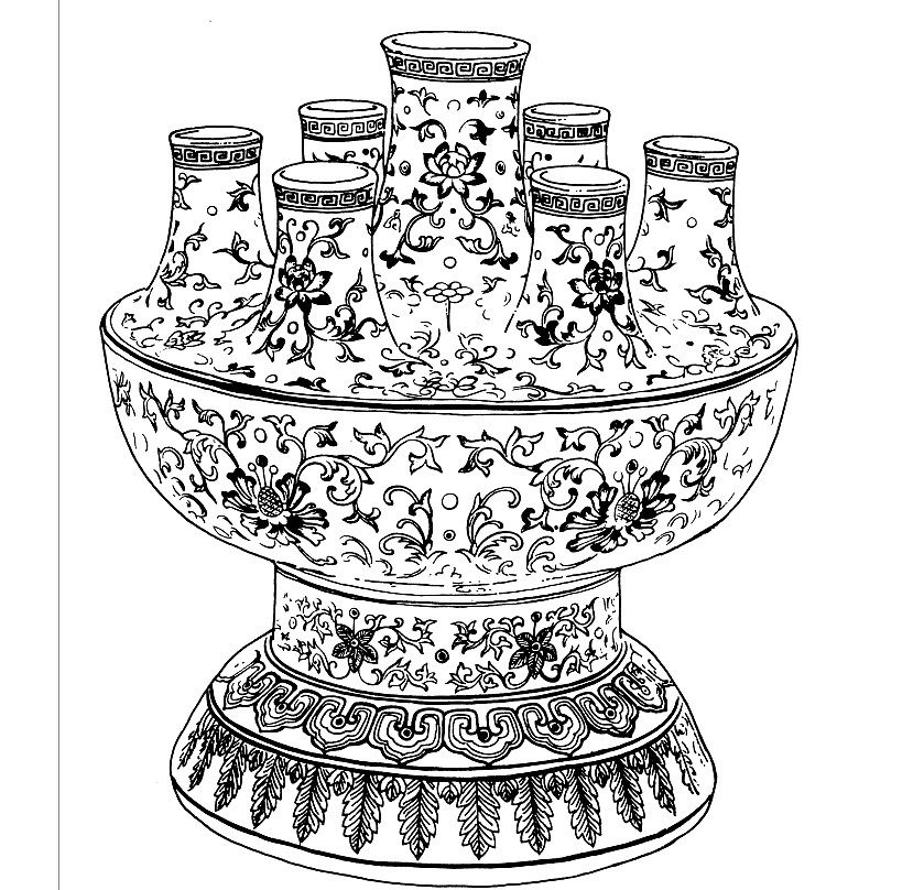 HQ614 Цин династия фарфоровой рисунок, цветы и деревья, знаменитые векторные графики оформления рисунков (AI+TIF) 1178 Набор